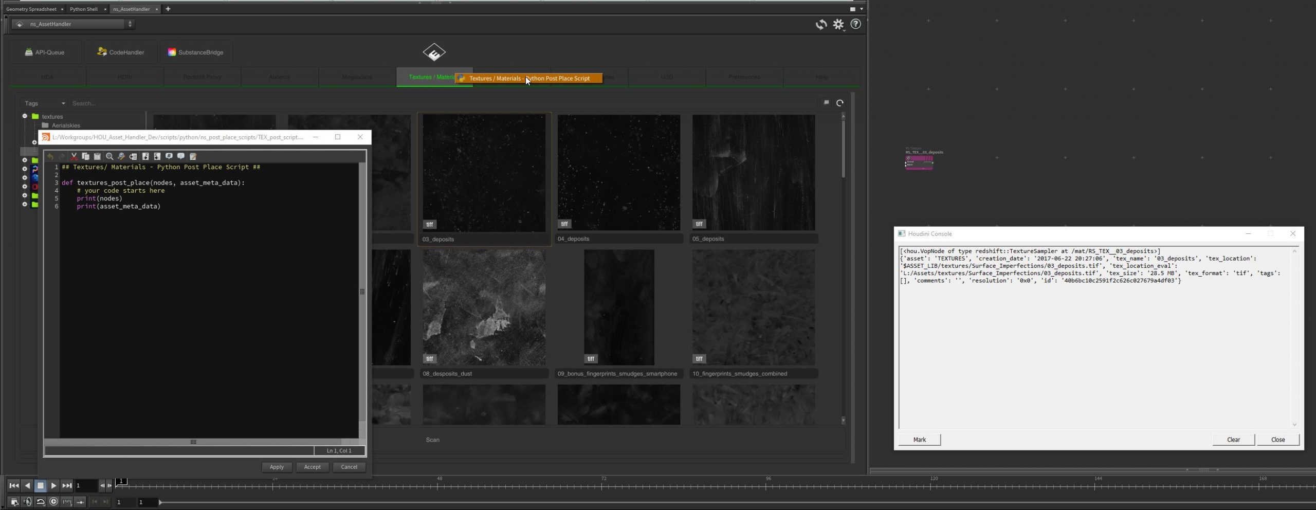 Post placement Python code with return arguments/references from the placed Node(s) and the meta data dictionary of the asset.