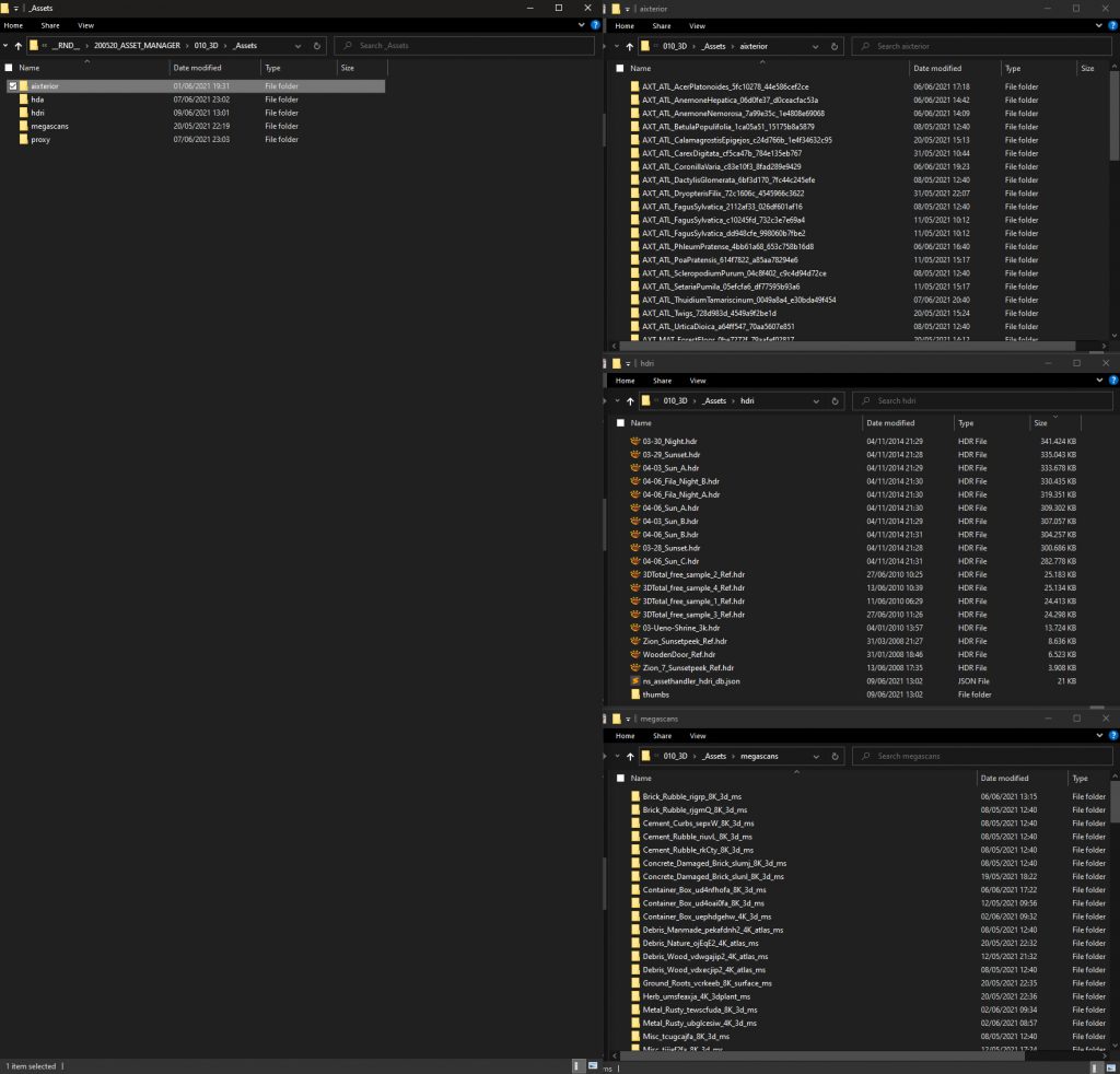 Note: Do not rename Files from Aixterior and Quixel. The script will throw a failure while parsing. Avoid own folder hierarchies. It will not parse folder recursively – performance wise.