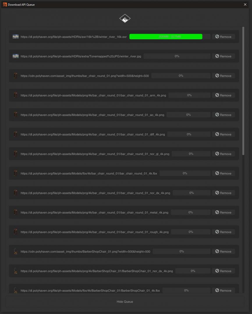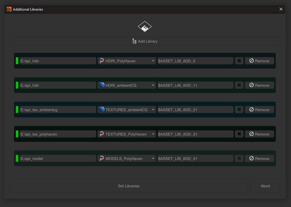 Make sure every API gets is own library folder to store locally the data. Except the hdri folder. Here you can link ambientCG an PolyHaven in one folder.