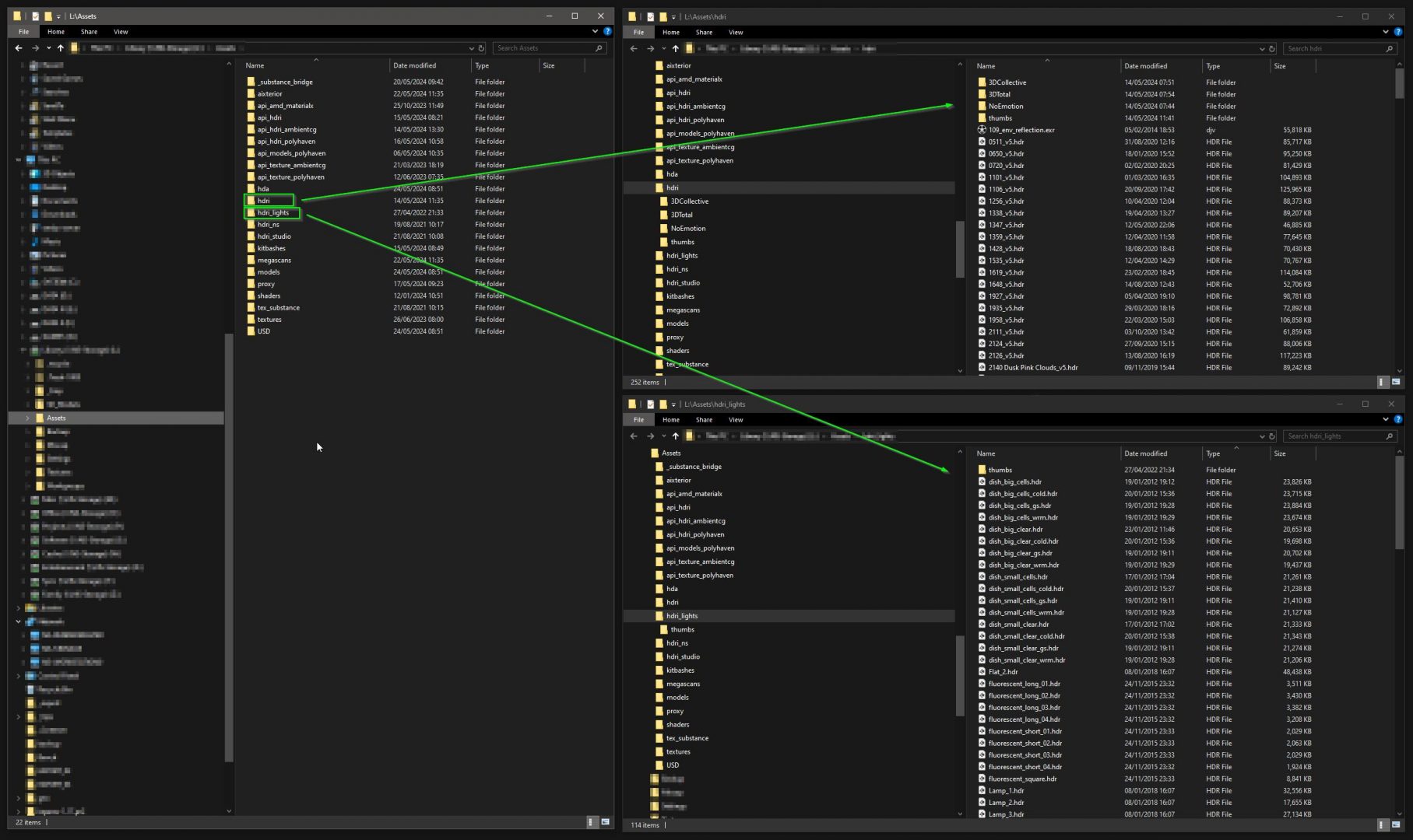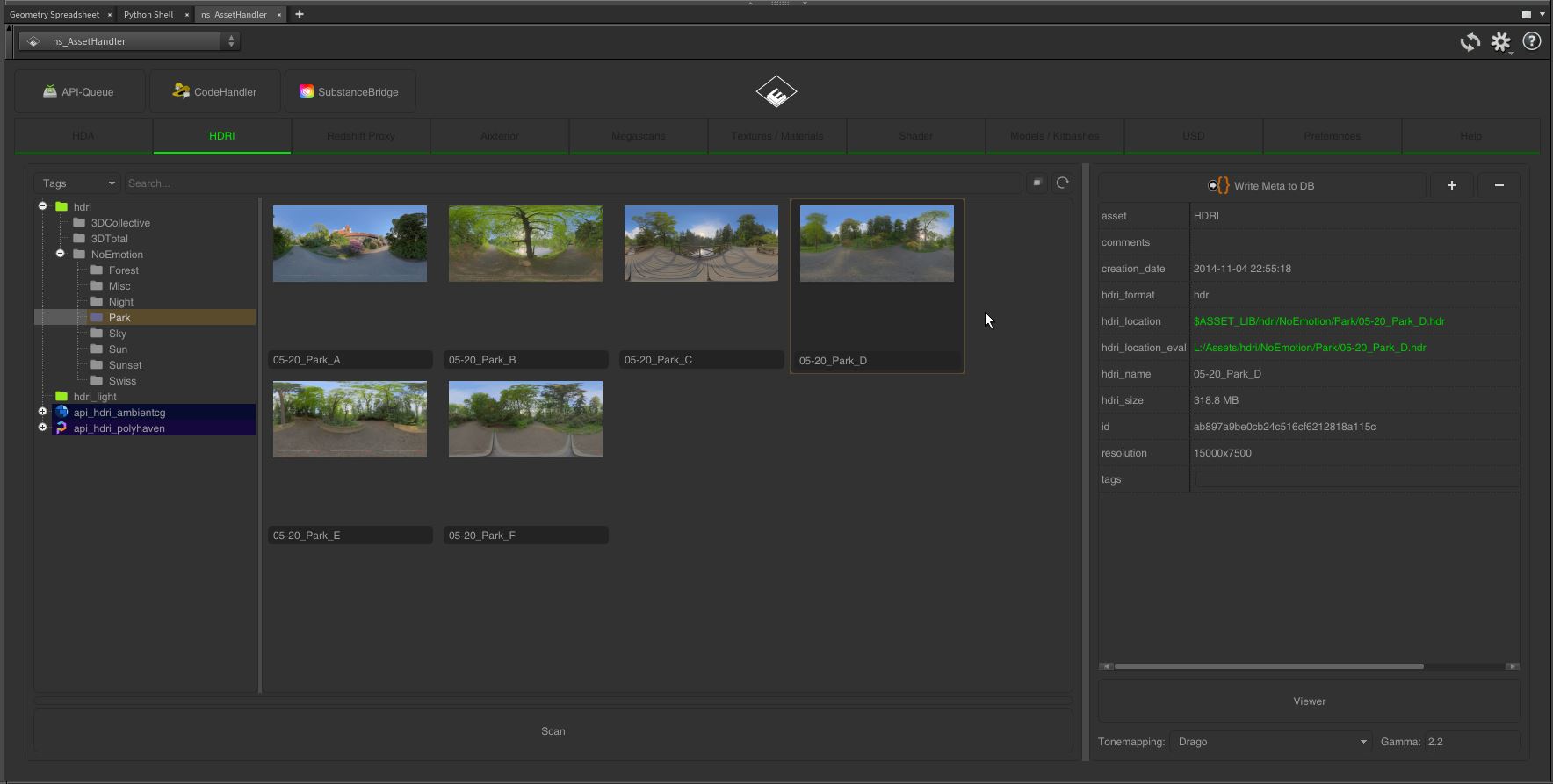 Double-Click on a HDRI in the Asset Handler, with a selected Domelight Node in the Network View, will instantly change the Input and Thumbnail of the Domelight.