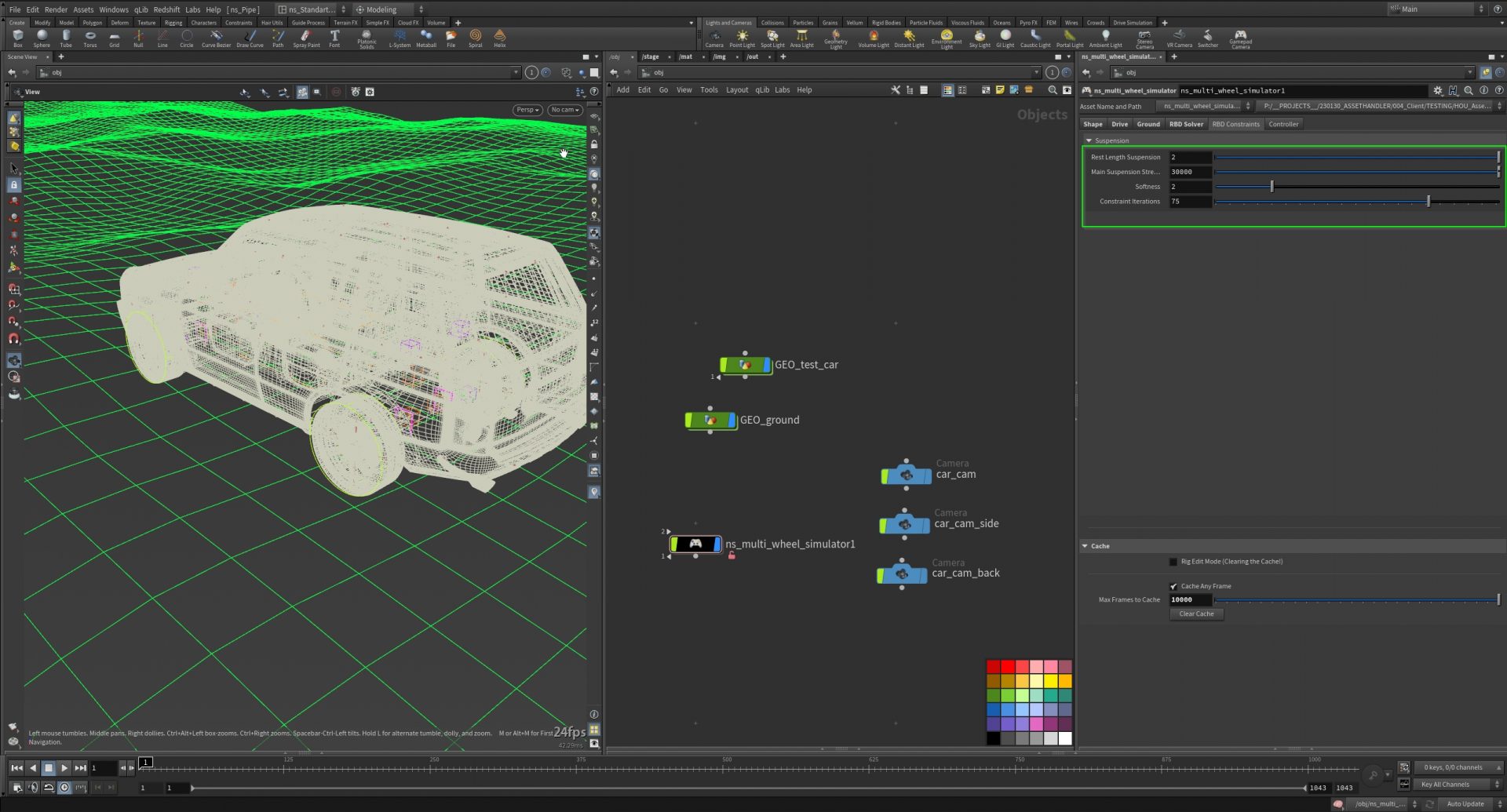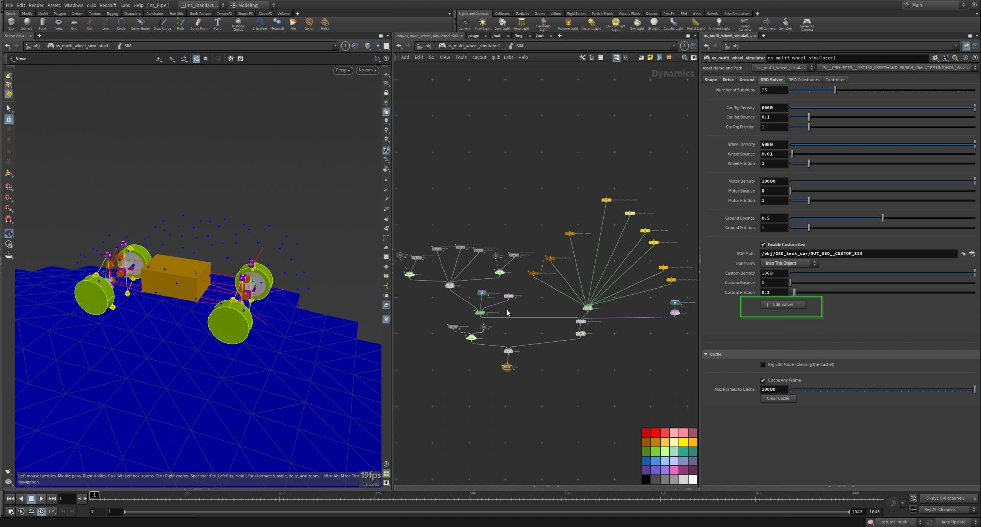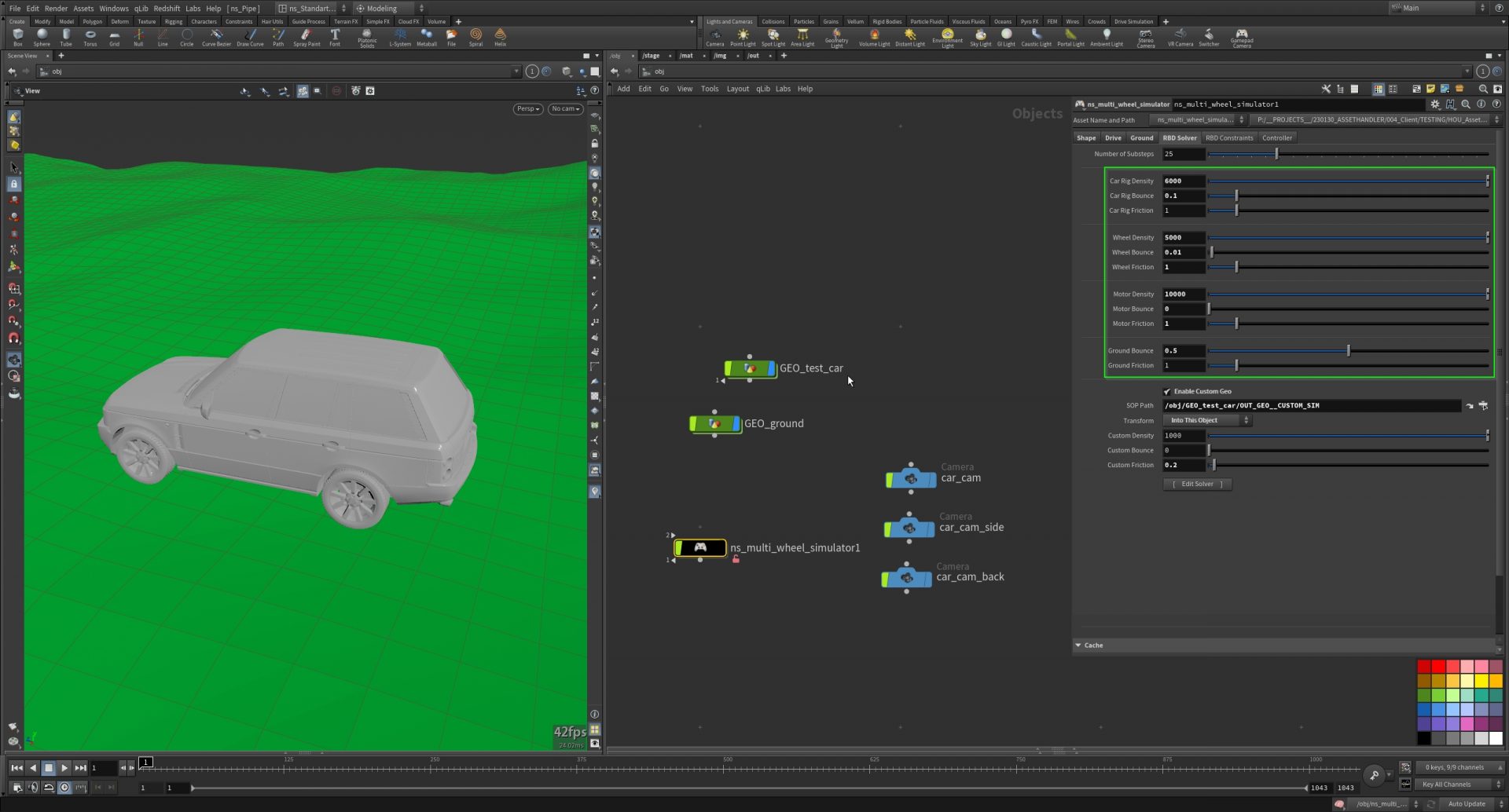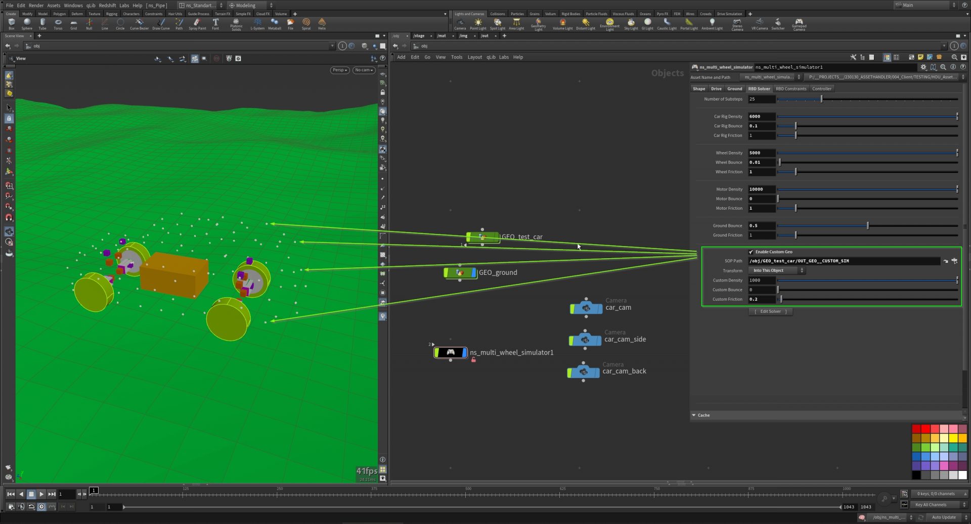 “Enable Custom Geo” is good for create a obstacle of the chassie, I just scatter in this case some points as sphere primitives. Works pretty fine, for low costs.
