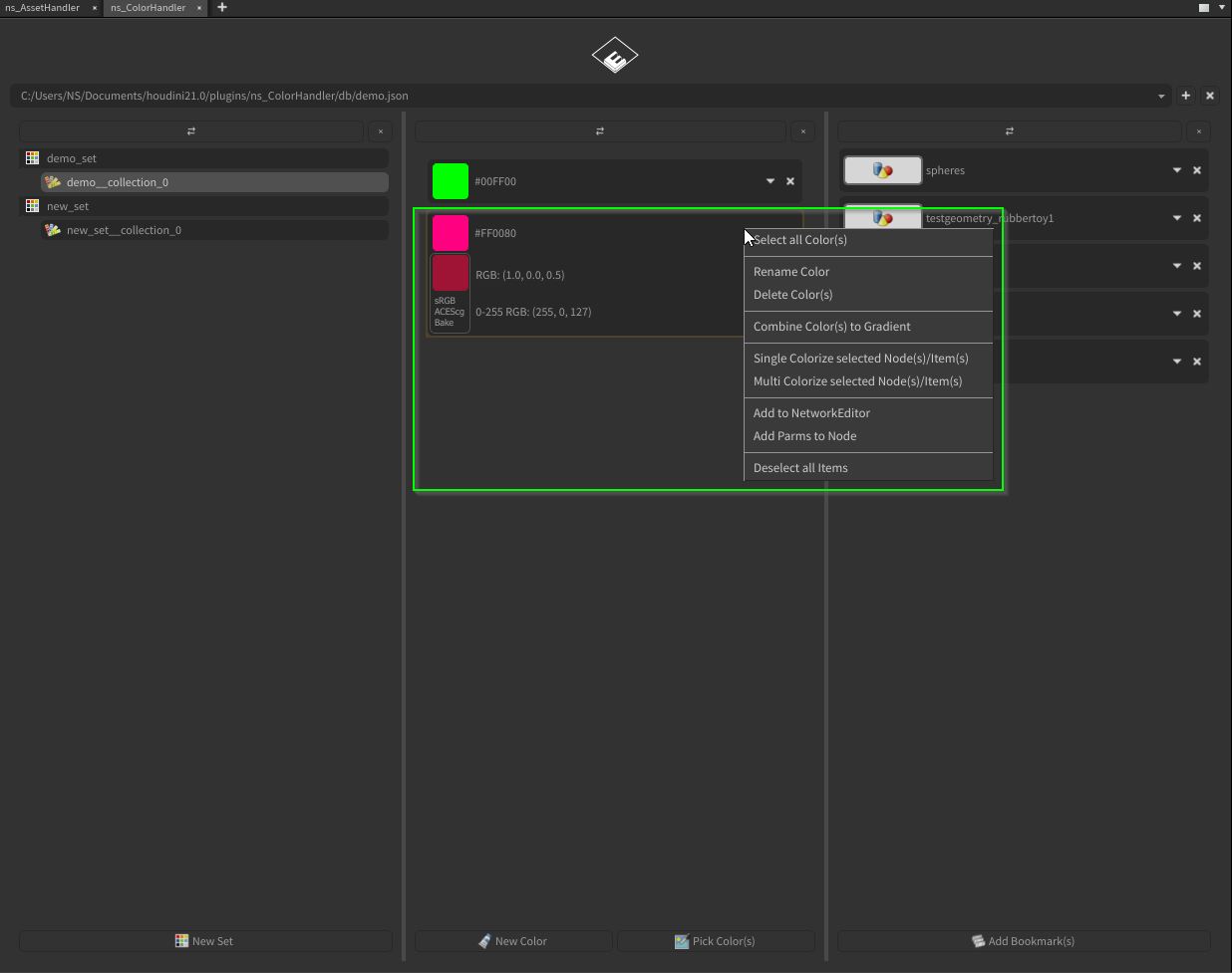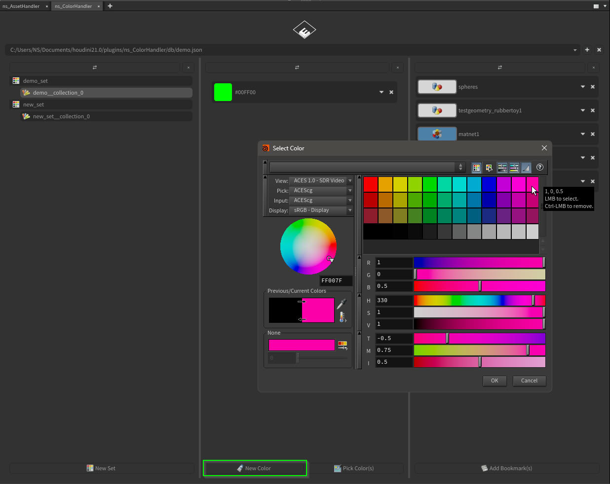 The simplest way to add color items to a collection is via “New Color” and the standart Houdini Color UI selector:
